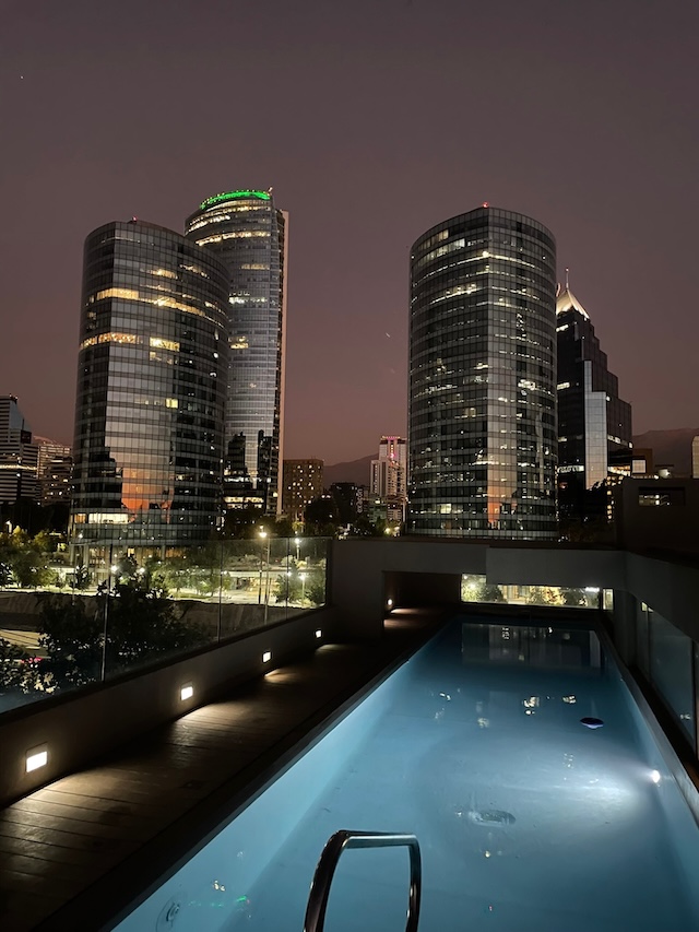 We flew four hours south to Santiago in Chile. Staying in super-modern Providencia was a shock - it's like Singapore under the Andes! We had three nights in a lovely hotel with their forest park on one side, and the modern city on the other.